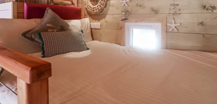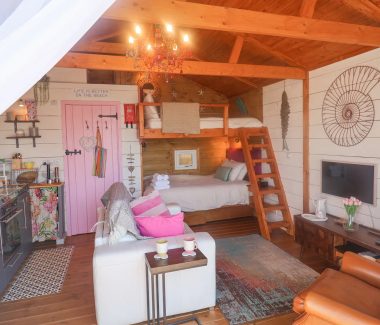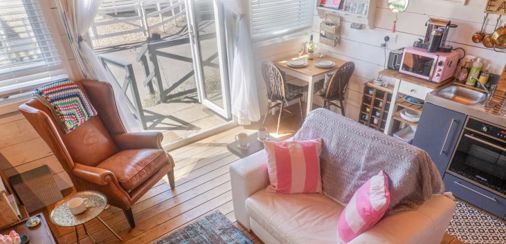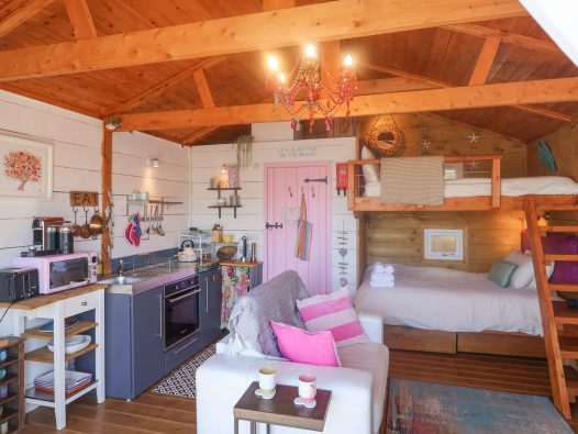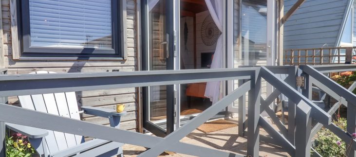 Sea Spray is a beautifully decorated newly built holiday cabin on Monmouth Beach seafront road. Sea view straight out of the front of the property, and just a 30 second walk to the beach. Weirdly, there are hardly any seagulls in this area. Probably because all the fishing boats unload their catch in town, so it is extremely peaceful. The microclimate here means temperatures feel warmer than inland, and the front patio only ever seems to receive gentle winds.